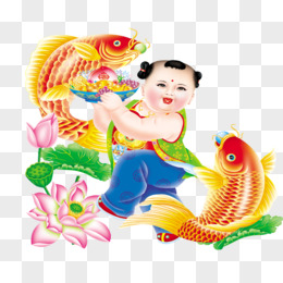 手绘年画娃娃葫芦寿桃人物素材