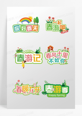 一组矢量春季春天春日拍照手举牌原创元素合集元素