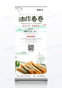 淡绿色背景创意春卷美食易拉宝