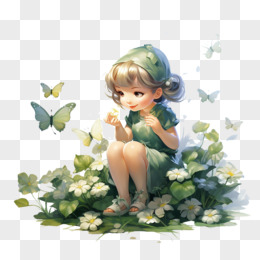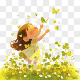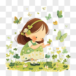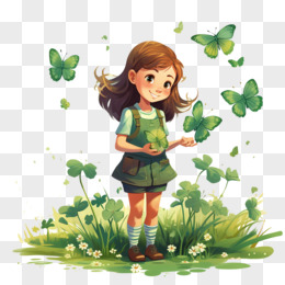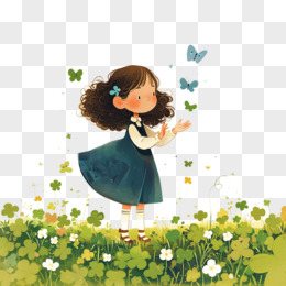 女孩和四叶草免抠元素