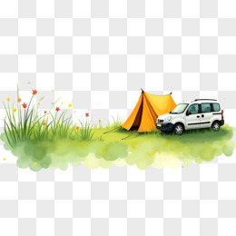 春季草丛中的帐篷免抠元素
