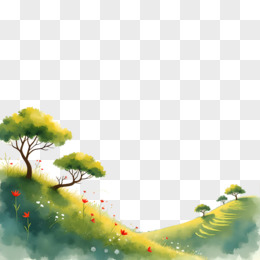 春季草地花丛和远山风景免抠元素