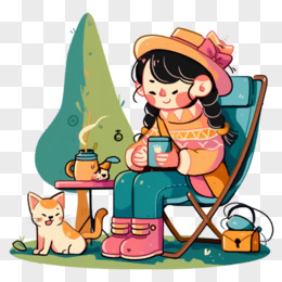 可爱女孩春天旅行免抠元素