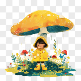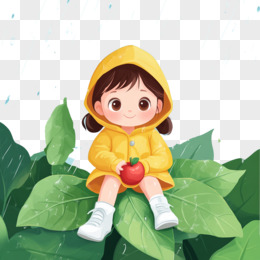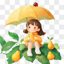 手绘卡通惊蛰人物坐在瓢虫上免抠元素