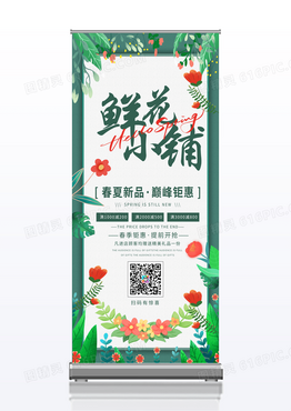 绿色小清新时尚大气春天鲜花活动促销宣传易拉宝