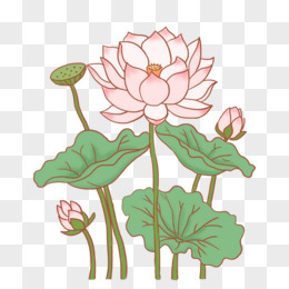 手绘荷花池莲花荷叶锦鲤免抠元素