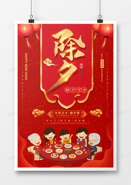 大红喜庆除夕团圆海报