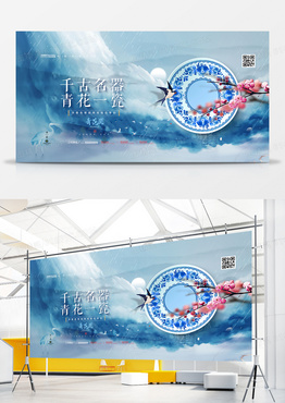 创意千古名器青花一瓷青花瓷陶瓷展板设计