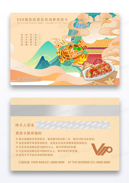 中国风插画餐饮VIP贵宾卡会员卡充值卡餐饮会员卡