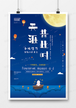 卡通蓝色天涯共此时中秋节日海报设计