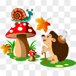 手绘插画风刺猬蝴蝶蘑菇免抠元素