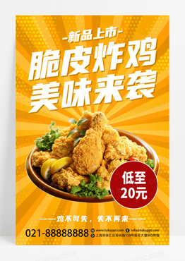 黄色创意脆皮炸鸡美味来袭美食宣传海报