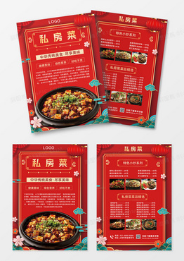 红色房菜价目表特色餐馆宣传家乡菜乡下菜农村菜宣传单