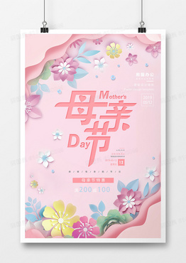 粉色母亲节温馨促销打折海报