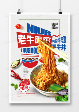 创意简洁面馆新品面条美食促销海报