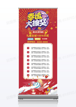 幸运大抽奖折扣卡通质感红蓝创意电商促销立体艺术字
