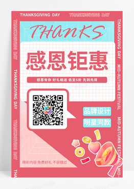 粉色感恩节对话框促销海报