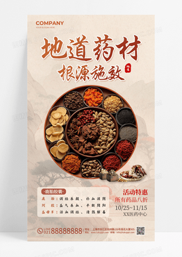 卡其色新中式中药胶囊药品促销活动手机文案海报