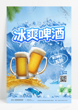 时尚大气冰山背景冰爽啤酒清凉一夏促销海报