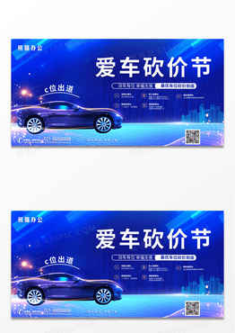 蓝色时尚大气爱车C位砍价节车位宣传促销活动展板汽车