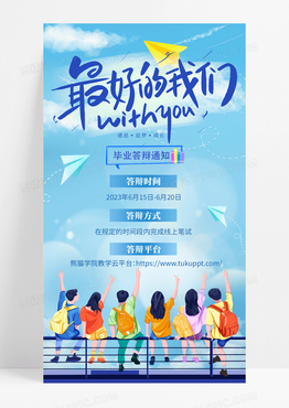 通用蓝色插画毕业答辩邀请函大学毕业邀请函手机宣传海报毕业季