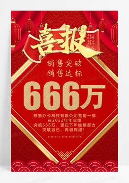 红色大气年会喜报宣传海报