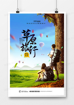 清新草原旅游旅行海报设计