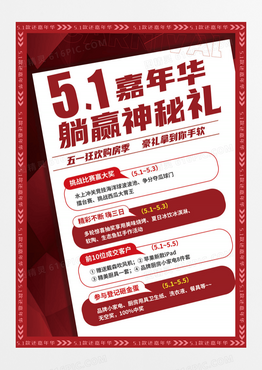 红色简约51嘉年华躺赢神秘礼五一劳动节手机海报