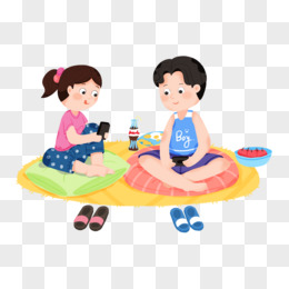 卡通小伙伴坐在地毯上打游戏机素材