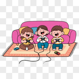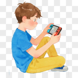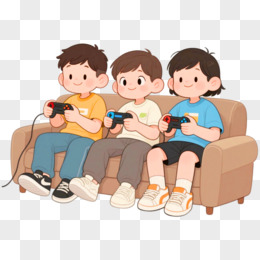手绘卡男孩们一起打游戏机免抠元素