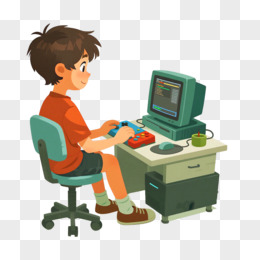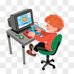 卡通打电动游戏的年轻人免抠元素