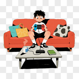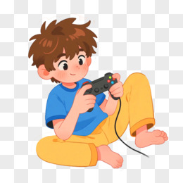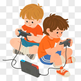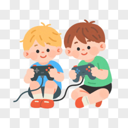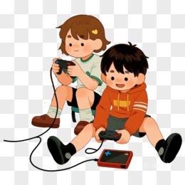 卡通手绘免抠男孩女孩一起玩游戏元素