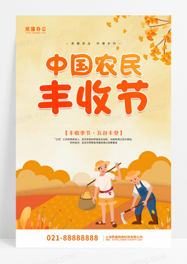 黄色卡通中国农民丰收节活动宣传海报设计