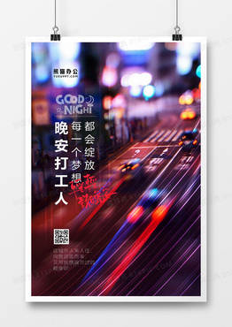 简约晚安打工人正能量暖心语录海报