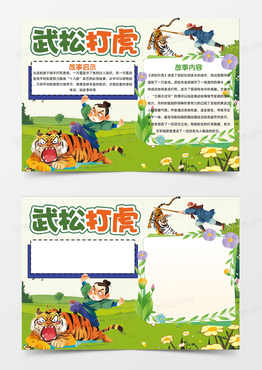武松打虎水浒传故事手绘卡 成语故事手抄报