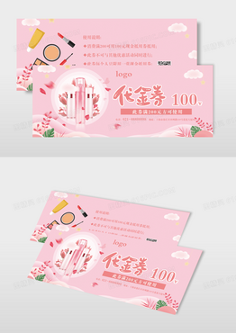 粉色背景代金券100元代金券美容美妆化代金券化妆品代金券模版
