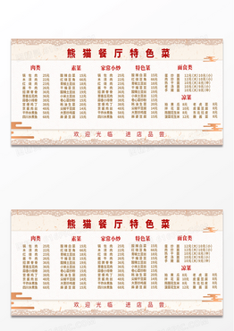 中国风简约餐饮美食饭店菜单价目表展板饭店菜单餐厅代金券