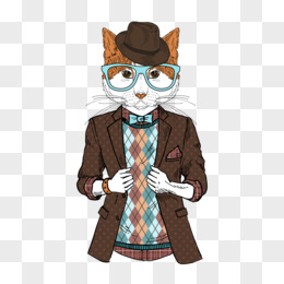 手绘英伦风素材欧美剪影 戴眼镜的狗狗