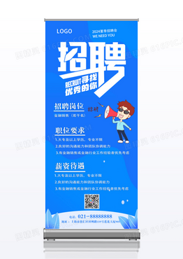蓝色简约校园招聘招聘岗位薪资待遇x展架背景
