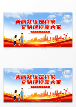 简约时尚大气美丽社区是我家文明建设靠大家宣传展板社区展板