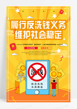 黄色卡通履行反洗钱义务维护社会稳定宣传海报