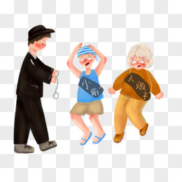 手绘卡通警察抓小偷免抠元素