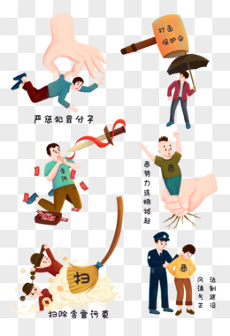 一组手绘卡通扫黑除恶合集系列四素材