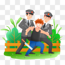 手绘卡通警察抓人素材