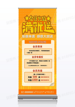 橙色电商会员充值感恩大放送会员专享展架