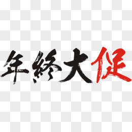 红色年终大促毛笔字