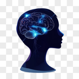 插画蓝色人的轮廓中的发光大脑免抠元素