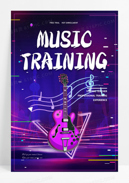 炫彩彩色音乐吉他海报