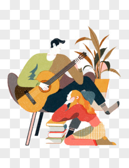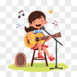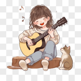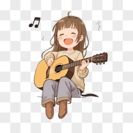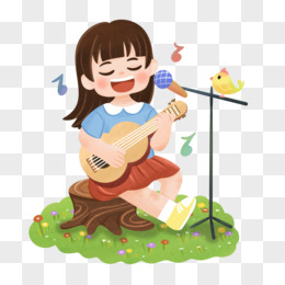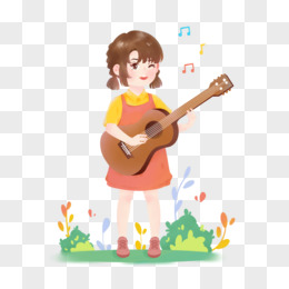 手绘卡通单人弹唱免抠元素