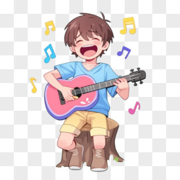卡通手绘男生弹吉他副唱免抠元素